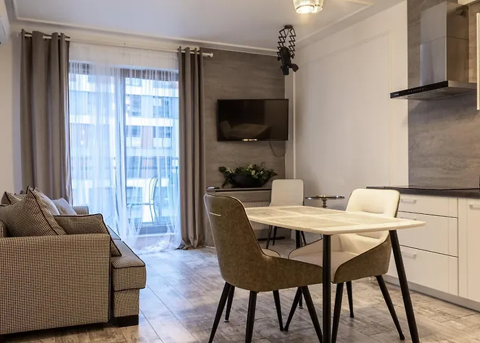 The 43 m² Spacious Apartment With Balcony And Garage - Mokotow Warsaw offers proximity to a number of tourist attractions, such as the Old Town, located around 7 km away. The apartment features Wi-Fi, along with complimentary private parking for guests travelling by car.